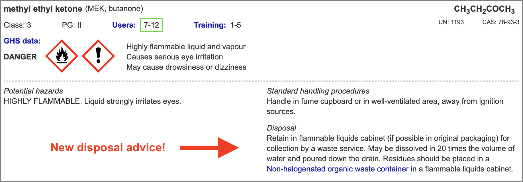 We have added 62 new chemicals and solutions which were requested by users, updated the User codes and Training codes, and improved the text for 20 chemicals. Additions include indicators, dyes, esters, and a number of less-common chemicals. Please let us know if you still can't find a chemical that you are using!